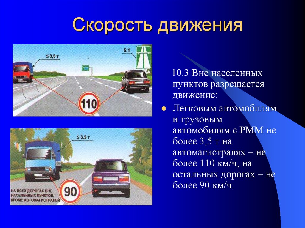 10.3. Вне населенных пунктов разрешается движение:
