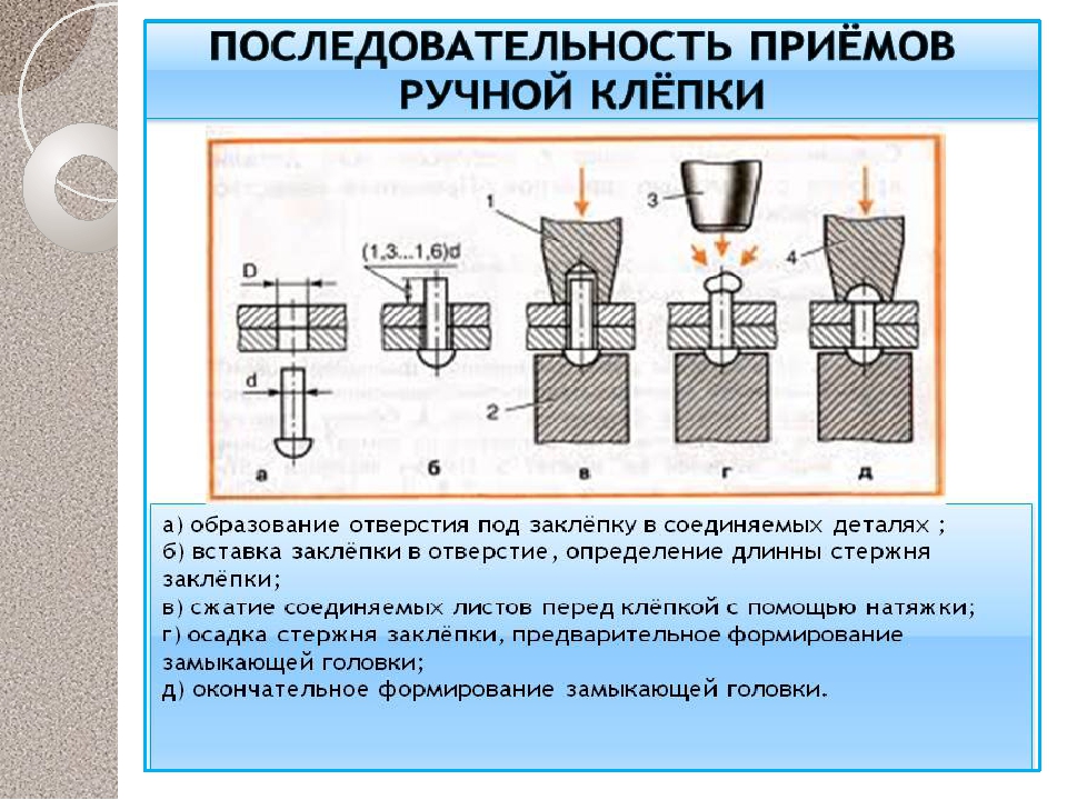 В зависимости от диаметра заклепки, потребности и вида клепки используются ручная и механическая клепка.