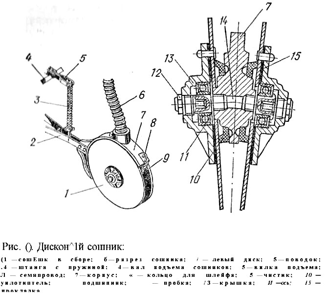 Следует отметить, что существует V-образный сошник маятникового типа, имеющий двухдисковую конструкцию, в которой элементы смещены друг относительно друга.