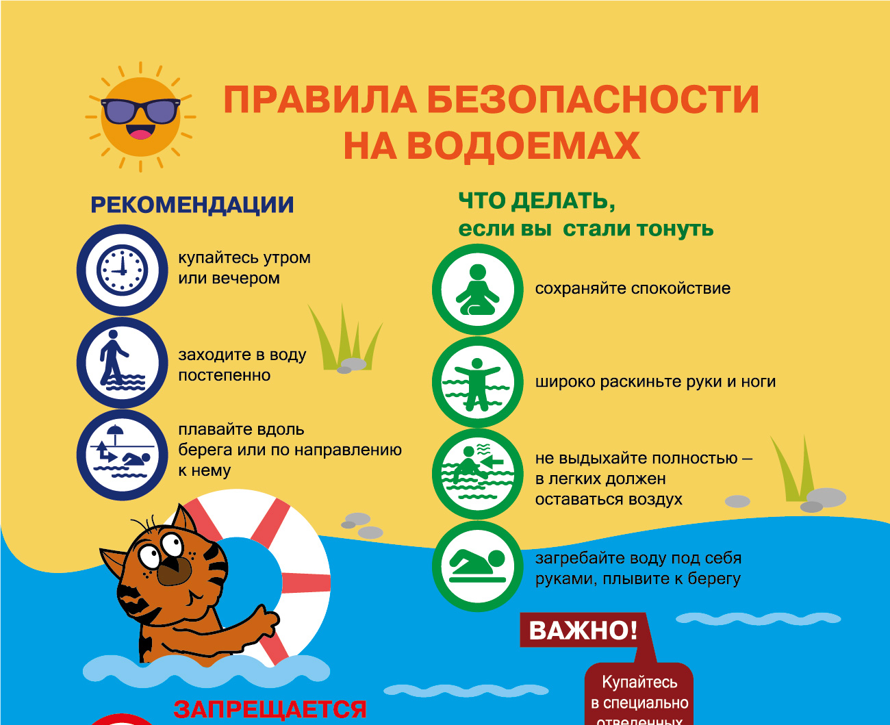 - Плавайте только в специально отведенных для этого местах.