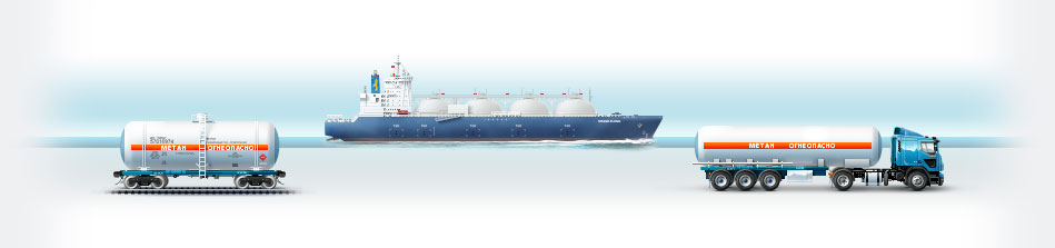 • Регазификация СПГ. Для контролируемого превращения СПГ в газообразное состояние строятся регазификационные терминалы, где газ хранится в охлаждаемых резервуарах, а затем, когда потребителям требуется газ, расширяется до газообразного состояния и закачивается в трубопровод. СПГ можно транспортировать по суше автомобильными и железнодорожными цистернами.
