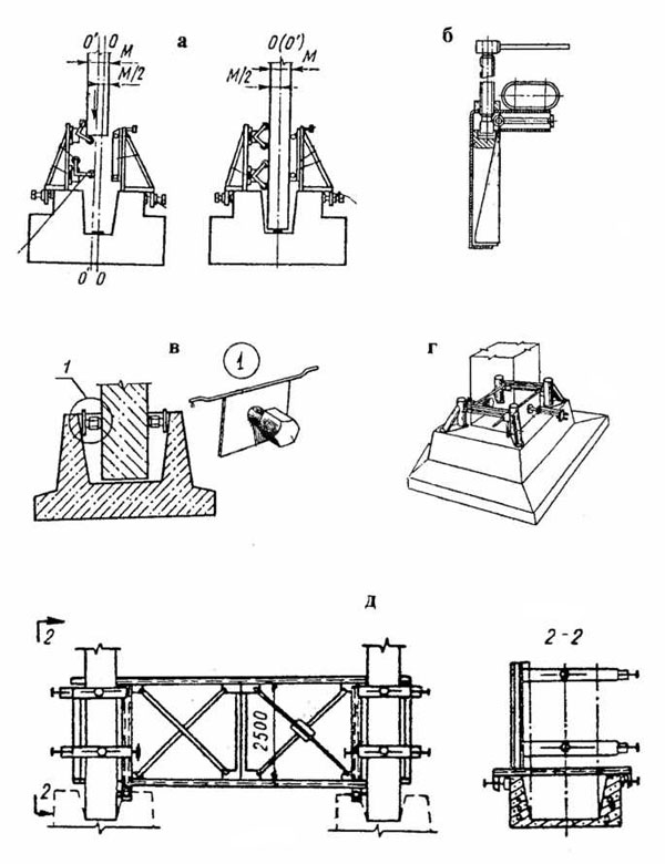 В первом случае точность установки конструкции достигается в результате свободного ее перемещения в пространстве, осуществляемого монтажниками в процессе выверки и визуального сопоставления ее положения с показаниями измерительных инструментов и геодезических приборов. При использовании этого метода точность монтажа зависит от многих случайных факторов, затрачивается большое количество ручного труда на выверку (иногда до 60% от общей трудоемкости).