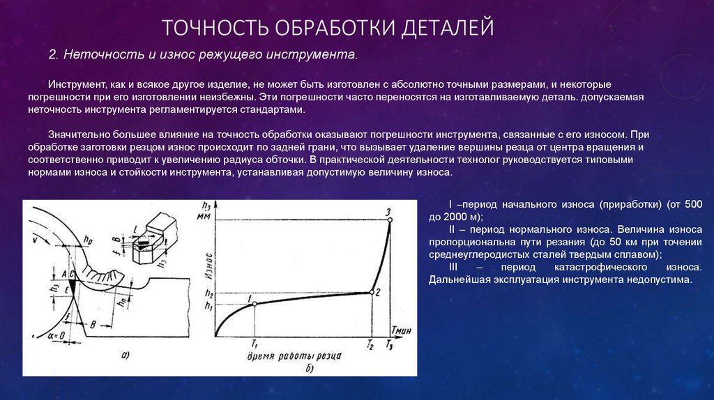 Чтобы сократить длительность испытаний при определении величины износа, Π. М. Хрущевым и Е.С. Берковичем предложен метод лунок (искусственных баз), вырезаемых на поверхности, подлежащей исследованию. Лунки нарезают специальным прибором. Схемы установки резца и сечения лунки представлены на рис. 19.
