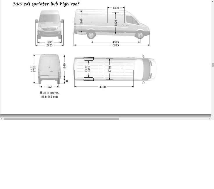 | Mercedes-Benz Sprinter | 2008 to 2018 | L4h4 | 15. 5 | 470 | 178 | 194 | 734 | 243 | 282 | |||||||||||||
