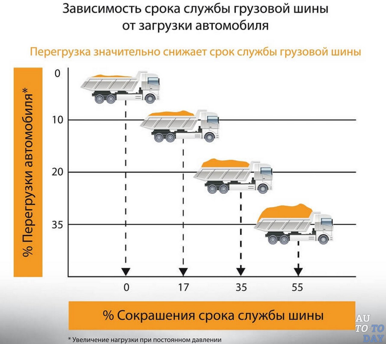 1. От машины, её загруженности: насколько она тяжела с грузом для стоящих на ней покрышек.