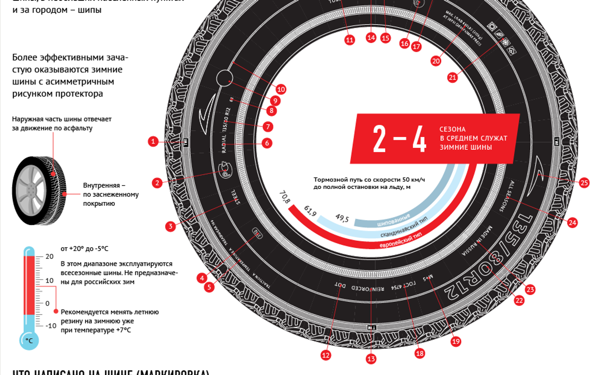 Производители шин предлагают универсальные типы шин для различных областей применения. Различные шины не будут иметь одинаковую длину протектора. Например, всесезонные и зимние шины нельзя использовать в течение одинакового периода времени.