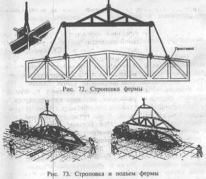 | Пример унификации стропильных.| Схемы строительного подъема о — в легких фермах. б — в тяжелых фермах.