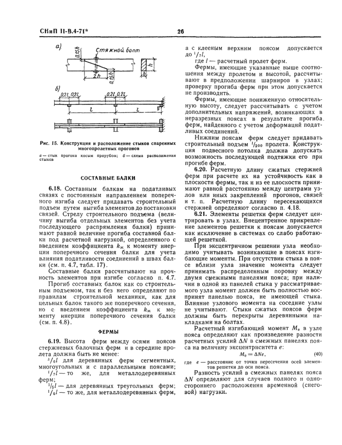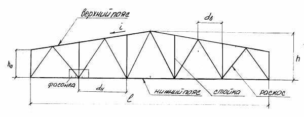 Строительный подъем ферм назначают не менее / 20о пролета. Каждой балке, входящей в состав сжатого пояса, должен быть сообщен обычный для балок строительный подъем. В фермах шпренгельного типа рекомендуется среднему узлу придавать подъем, равный четырехкратной высоте строительного подъема отдельных балок.