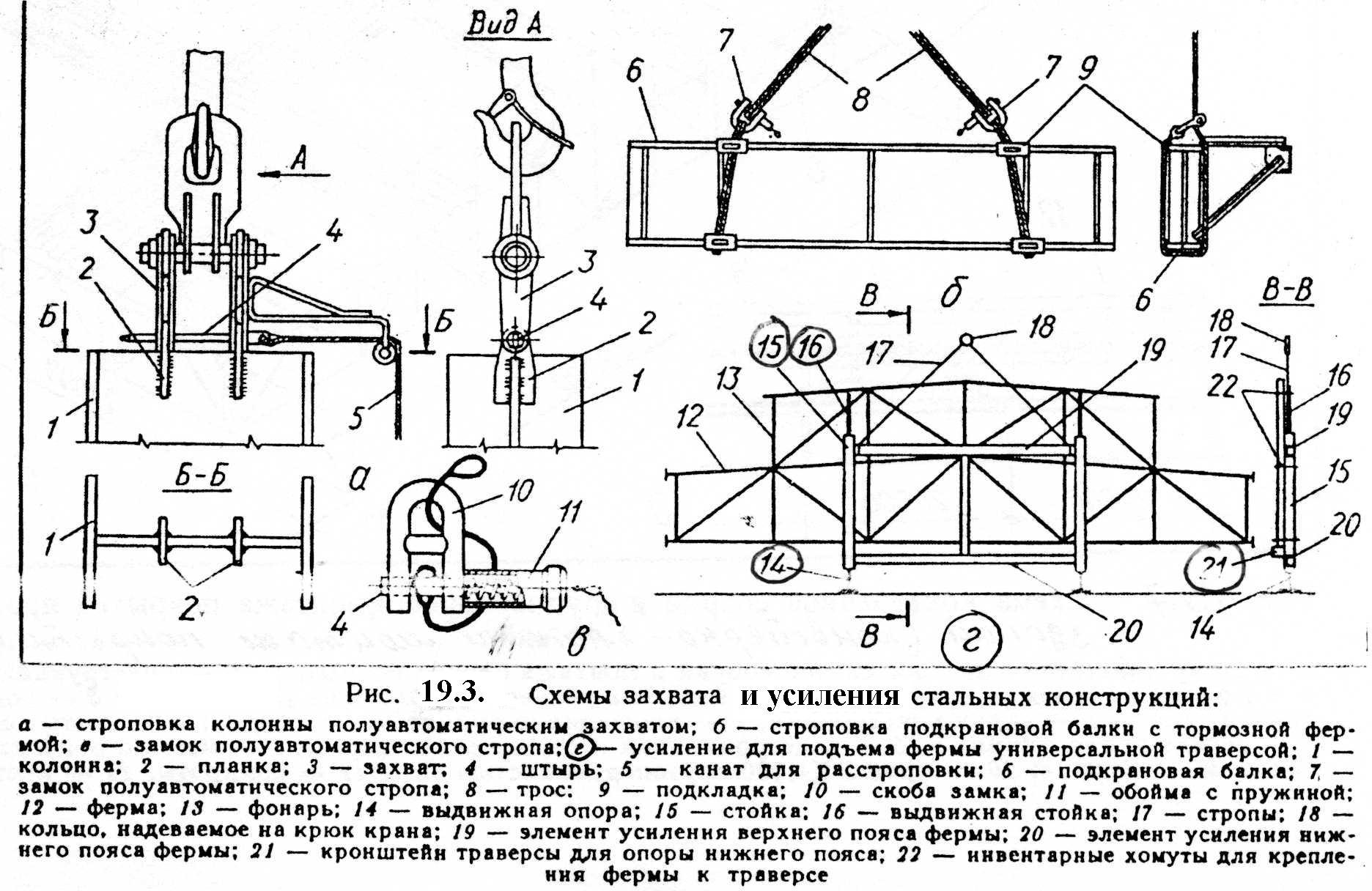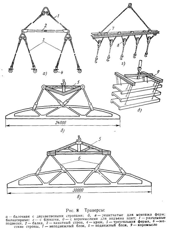 устройства в виде гибких стропов, траверс и захватов. Их конструкция должна обеспечивать простую строповку и расстроповку и безопасность монтажных