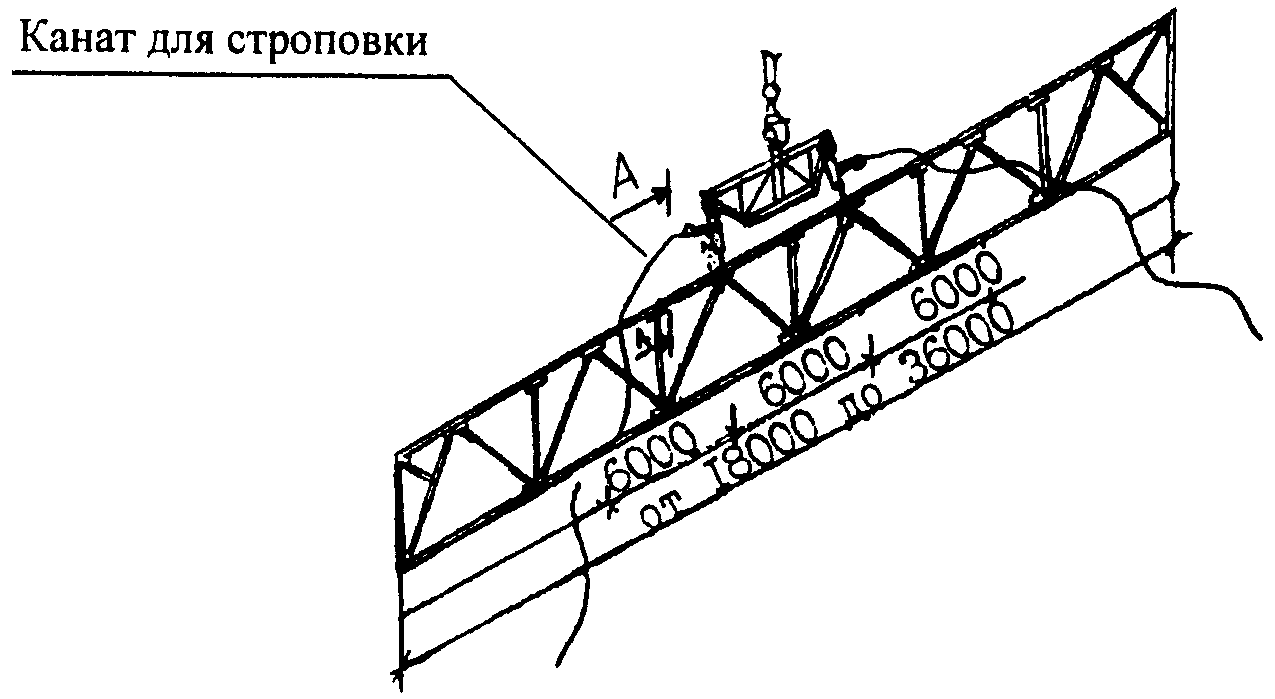помощью универсального троса или штифта, пропущенного в отверстие в верхнем поясе фермы. Расстроповку производят с подмостей опор фермы с помощью