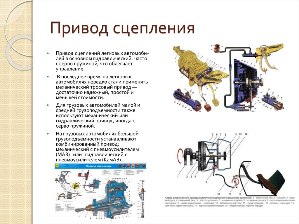 Привод сцепления служит для дистанционного управления сцеплением. Наибольшее распространение получили механический и гидравлический приводы.
