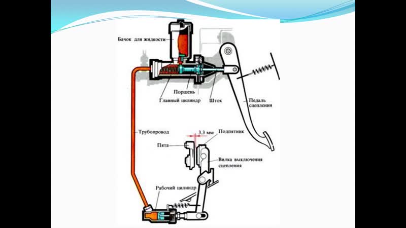 Схема любого гидравлического привода сцепления включает в себя определённый набор компонентов, определяющих работу оборудования в тех или иных случаях. Тут нет традиционного троса внутри конструкции, поскольку механизм включения сцепления основан на работе гидравлической магистрали.