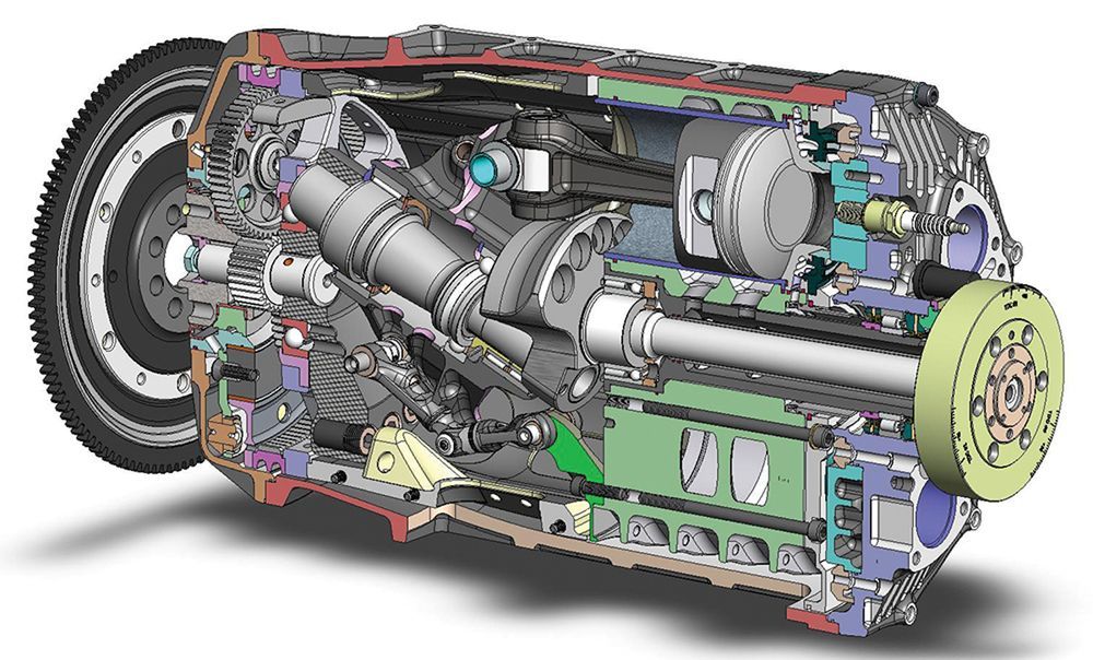 В СПК усилие от давления газов от двигателя к компрессору и обратно передается непосредственно через поршни – отпадает необходимость в передаточных звеньях.