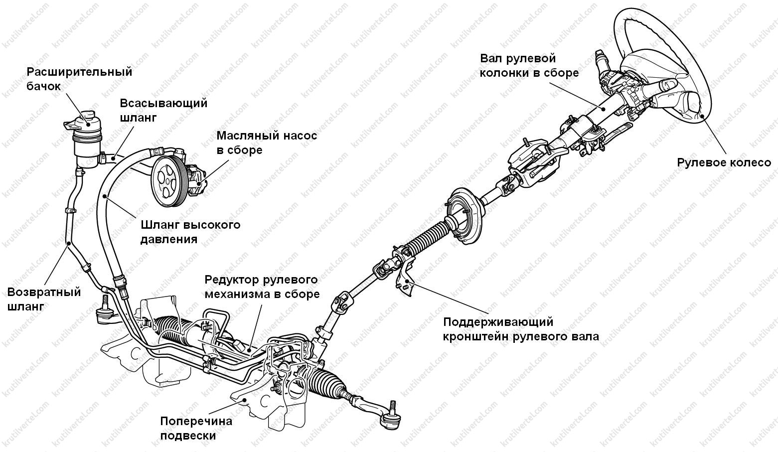 В зависимости от того, в какую сторону вы поворачиваете руль, этот поршень соответствующим образом толкает рулевой механизм.