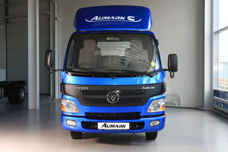 Передняя часть похожа на меньшую модель Aumark и имеет большую черную решетку с логотипом компании в центре. Над решеткой Foton добавил красивую полированную планку, которая выглядит неплохо и подчеркивает современный вид грузовика.Для большей устойчивости и высоких скоростей, а также для того, чтобы максимально снизить шум ветра, грузовик был оснащен двумя боковыми дефлекторами, а над ними расположены два тонких поворотных фонаря.