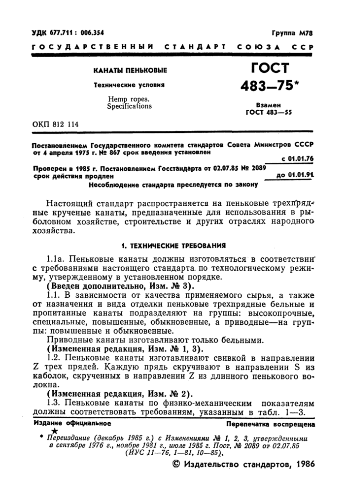 Капроновые канаты выпускаются в соответствии с ГОСТ 10293-77 (табл. 2). Основной материал – капроновый шелк, свитый в каболки, а затем в пряди.
