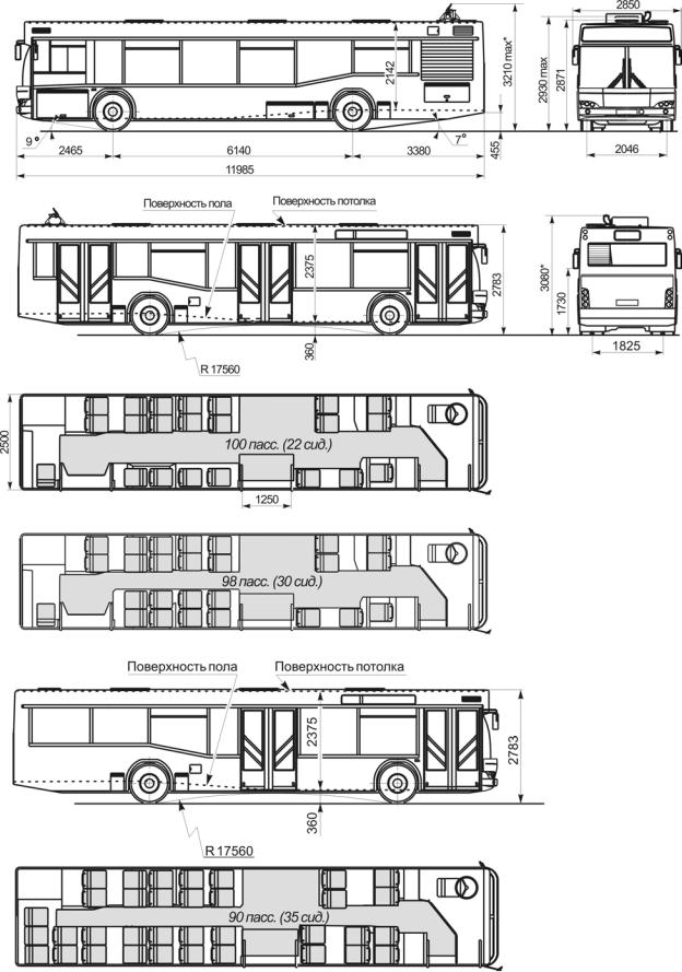 | Примечания | Автобус городской сочлененный особо большой вместимости предназначен для перевозки пассажиров на городских маршрутах. По желанию заказчика устанавливаются: сдвижные форточки, крышные вентиляторы, электронная информационная система. | |