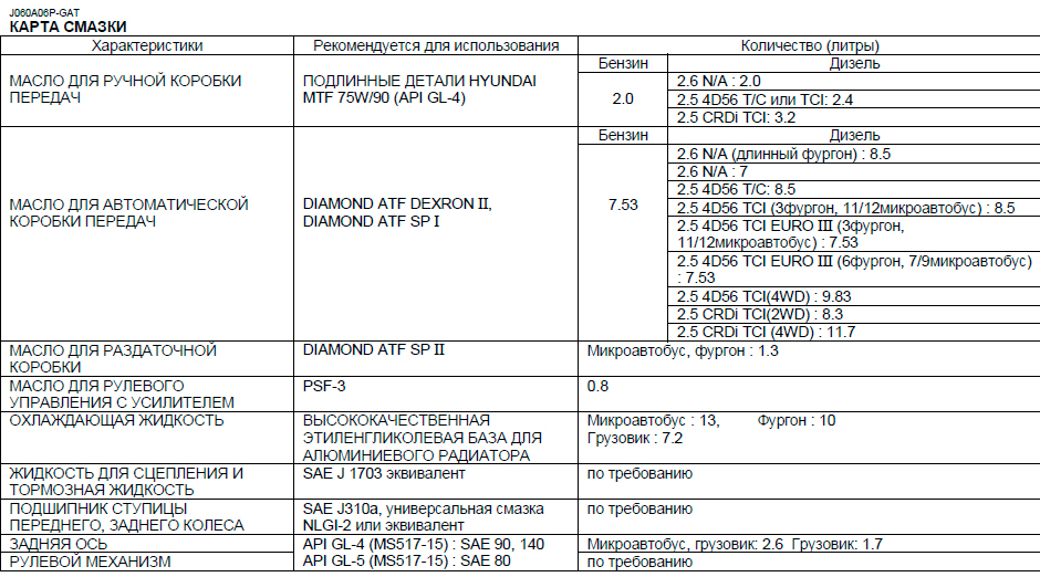 | 22 | 2.5 CRDI AT Base Long (11 seats) | 2004 — 2007 | Задний | AT-4 | 2497 | 10,0 |