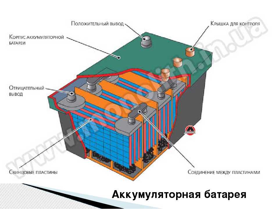 Внутреннее сопротивление аккумулятора складывается из сопротивлений аккумуляторных пластин, сепараторов и электролита.