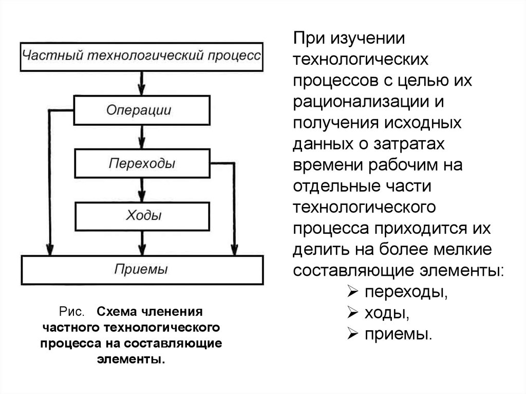 Составные части технологического процесса Категория: Слесарно-инструментальные работы Составные части технологического процесса Чем сложнее изделие, тем сложнее технологический процесс. И все же самый сложный технологический процесс может быть разделен на отдельные, вполне определенные части, элементы, соответствующие характеру выполняемых работ. Прежде всего технологический процесс делится на технологические процессы образования заготовки, обработки деталей и сборки изделия. При более подробном делении элементами технологического-процесса являются: операция, установка, переход. Таким образом, технологический процесс состоит из операций, операция — из отдельных установок и переходов. Технологическая операция — это часть технологического процесса, выполняемая на одном и том же рабочем месте от начала обработки одной детали до перехода к обработке следующей. Установка — это часть технологической операции. Новое закрепление детали в приспособлении или же поворот ее в этом приспособлении, или же поворот по отношению к станку — означают новую установку. Установка иногда включает в себя отдельные переходы. Технологический переход — также часть операции, совершаемая над определенной обрабатываемой поверхностью одним режущим инструментом при постоянном режиме обработки. Достаточно применить другой режущий инструмент или изменить режим резания, или перейти к обработке другой поверхности, как появится уже новый переход. Отдельные переходы состоят из проходов и различных приемов. Такое деление технологического процесса упрощает его разработку и пользование им в производстве. Технологический процесс разрабатывается с различной степенью подробности, в зависимости от типа производства (поточное, массовое, серийное, индивидуальное) . Самым совершенным типом производства считается поточное производство, при котором все рабочие места расположены в порядке технологического процесса и при изготовлении детали осуществляется непрерывный переход от выполнения одной операции к выполнению другой. В этом случае осуществляется самая подробная разработка технологического процесса, вплоть до отдельных приемов. При массовом производстве, т. е. когда на данном рабочем месте изготовляется одна и та же деталь или выполняется одна и та же операция, производится также достаточно подробная разработка технологического процесса. При этом производстве разрабатываются технологические карты на каждую операцию с подробным описанием всех переходов и установок в данной операции, а также с указанием базовых поверхностей, инвентарных номеров оборудования, режущего и измерительного инструмента, технологической оснастки и всех данных для расчета основного и вспомогательного времени. В серийном производстве, т. е. таком производстве, когда на данном рабочем месте изготовляются группы (серии) различных деталей, или в индивидуальном производстве (при изготовлении на отдельных рабочих местах самых различных деталей), технологические процессы менее подробны. Во всех инструментальных цехах машиностроительных заводов производство инструмента, приспособлений и штампов в большинстве случаев единичное и поэтому подробной разработки технологических процессов не ведется. На инструмент, изготовляемый повторяющимися партиями, со