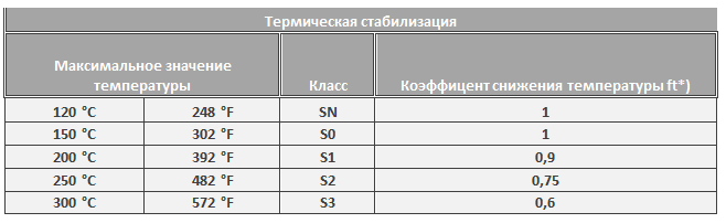 Рекомендации для каждого класса термостойкости приведены в таблице ниже.