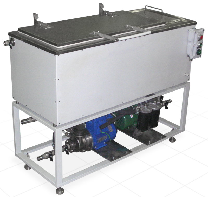 Оборудование для ультразвуковой очистки варьируется от небольших настольных устройств, которые часто можно найти в стоматологических кабинетах или ювелирных магазинах, до огромных систем емкостью несколько тысяч галлонов, используемых в различных промышленных целях. Выбор или проектирование надлежащего оборудования имеет первостепенное значение для успеха любого применения ультразвуковой очистки. Для самого простого применения может потребоваться только простой очиститель резервуаров с подогревом с промывкой в раковине или в отдельной емкости.