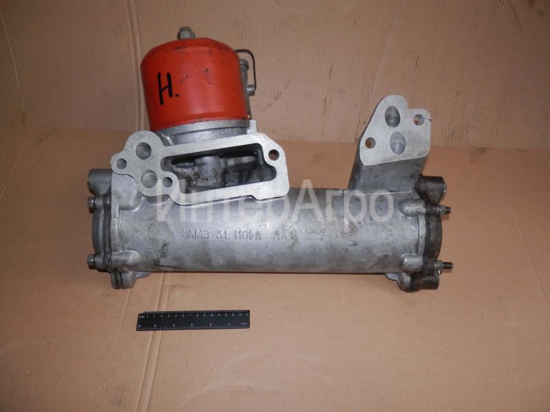 Водомасляный теплообменник 31-11с2А системы смазки,дизельного двигателя СМД 31, СМД 31А, СМД 31.01, СМД 31Б.04 комбайна Дон 1500. Предназначен для охлаждения масла водой, циркулирующей в системе охлаждения дизеля. Изделие после сборки проходит стендовые испытания при давлении моторного масла 0,6-0,65 МПа.Смазочная система предназначена для бесперебойной подачи масла к трущимся деталям дизеля с целью уменьшения трения и изнашивания деталей, а также для отвода от них теплоты и продуктов изнашивания.Полнопоточный масляный фильтр 31А-10с2 дизеля СМД-31 установлен на левой стороне блок-картера.