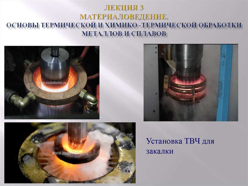 Детали под закалку нагревают в термических печах, ацетилено~ кислородным пламенем, токами высокой частоты (индукционный нагрев).