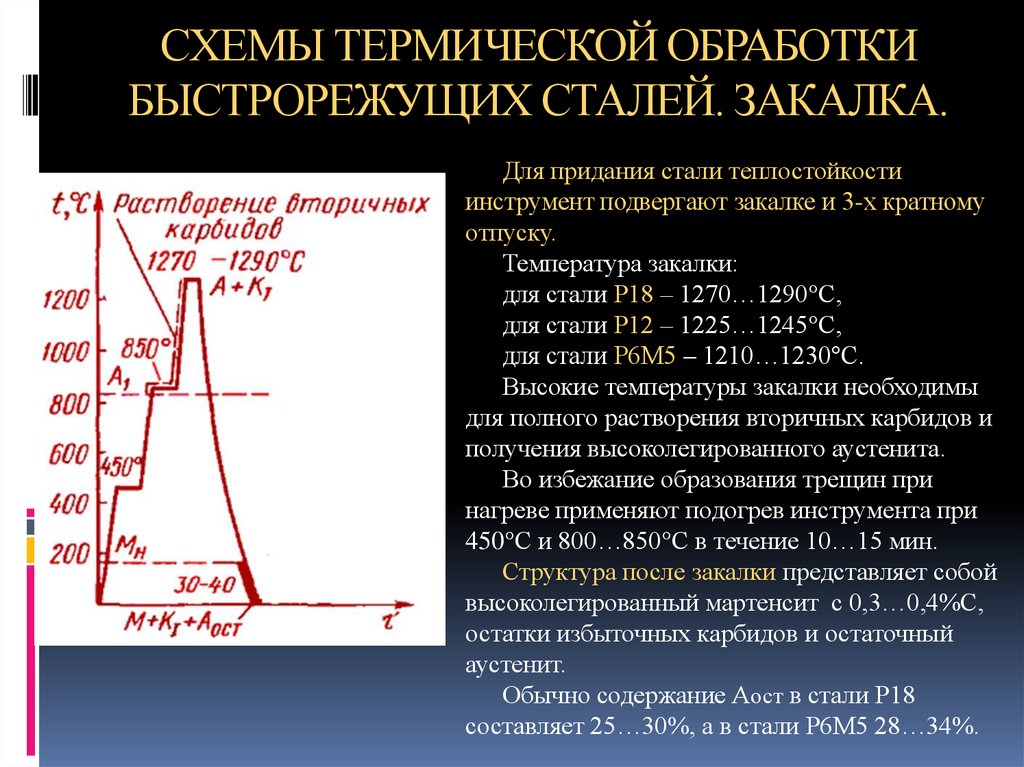 Термическая обработка сталей – это нагрев и охлаждение металлов для изменения их физических и механических свойств без изменения их формы. Можно сказать, что термическая обработка является методом упрочнения материалов, но ее также можно использовать для изменения некоторых механических свойств, таких как улучшение формуемости, механической обработки и т. д. Наиболее распространенным применением является металлургия, но термическая обработка металлов также может использоваться в производстве. стекло, алюминий, сталь и многие другие материалы.
