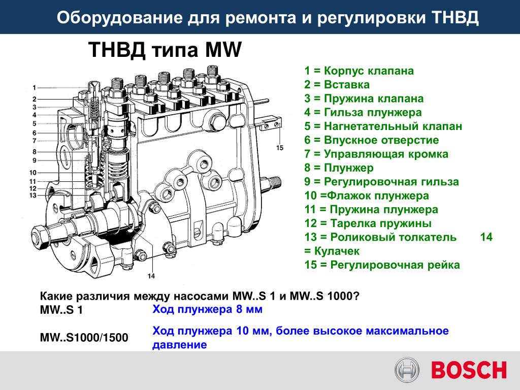 К этому можно добавить еще одну деталь под названием Slider , которая позволяет осуществлять электронную регулировку начала впрыска. Насосы с этой системой называются линейными нагнетательными насосами с золотником.