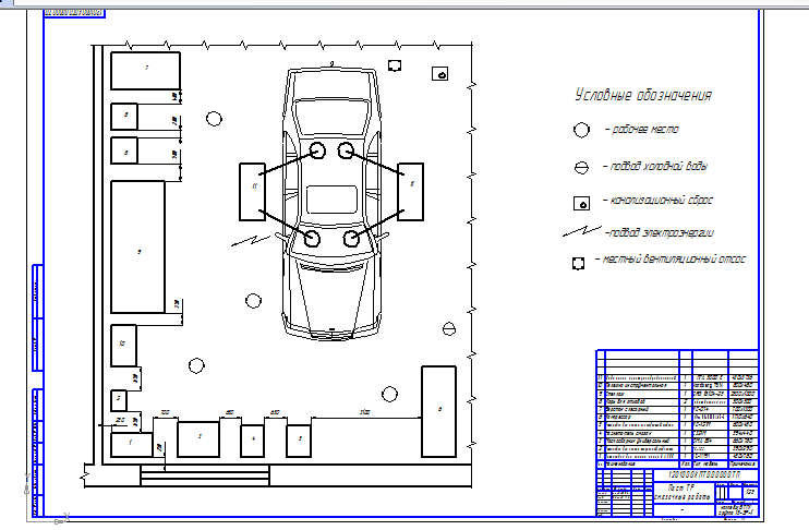 3Расчет вентиляции293.4Расчет потребности в воде304Технологическая часть314.1Организация ТО и ТР314.1.1Методы организации технологического процесса ТО автомобилей324.1.2Выбор метода организации технологического процесса ТО автомобилей334.1.3Организация труда рабочих на постах ТО автомобилей .