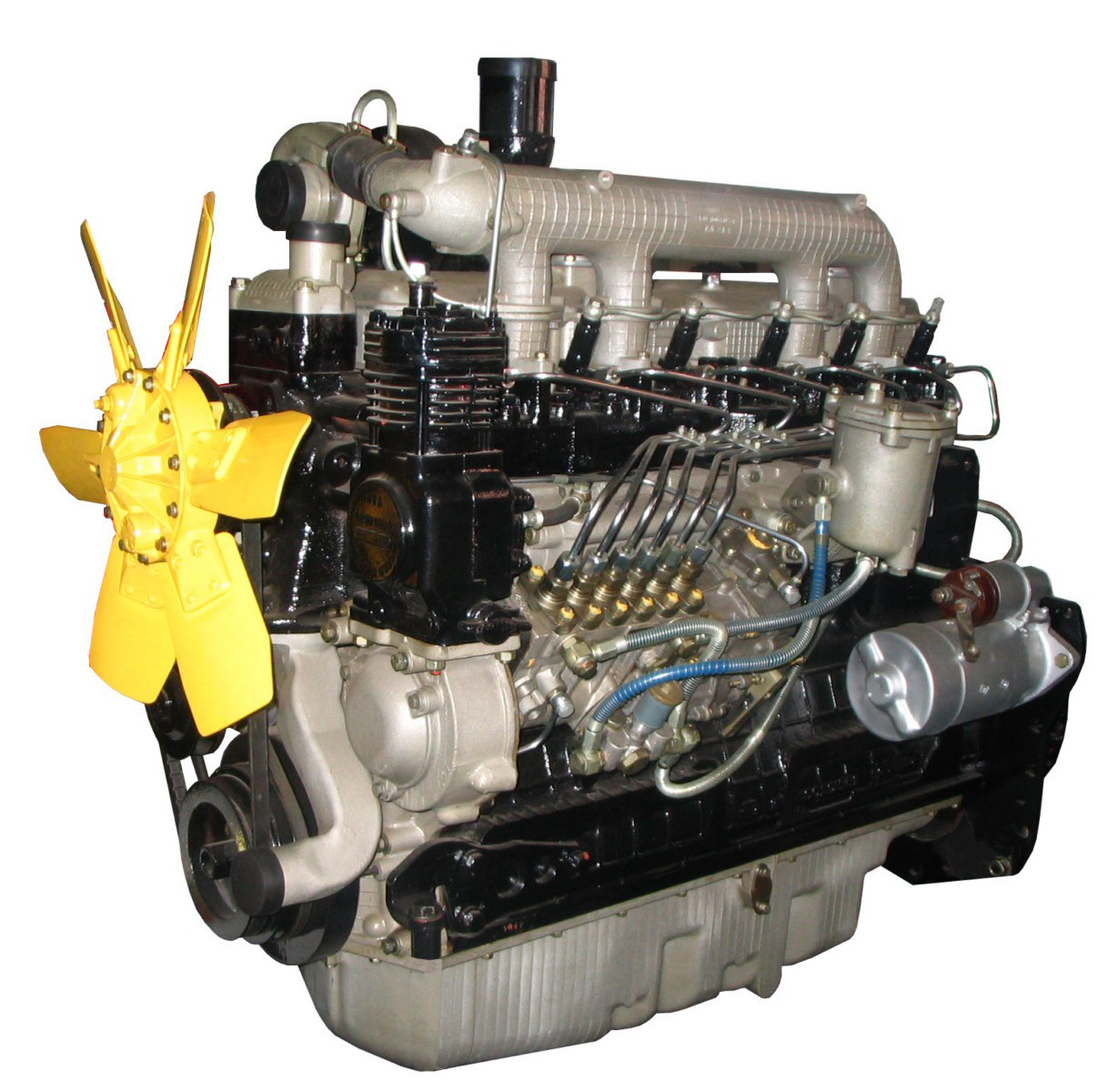 Базовая комплектация силового агрегата Д-243 не предусматривает установку турбонаддува, но его можно монтировать по заказу или в мастерской. Цилиндры расположены вертикально. Впрыск горючей смеси осуществляется непосредственно в цилиндры.