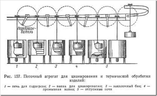 Недостатком жидкостного цианирования является сильная ядовитость цианистых солей. Поэтому цианистые ванны устанавливают в отдельном помещении, с вентиляцией у каждой ванны. При работе на цианистых ваннах требуется большая осторожность и тщательное соблюдение всех правил техники безопасности. Жидкостное цианирование проводится в цианистых ваннах, которые целесообразно устанавливать в поточную линию.