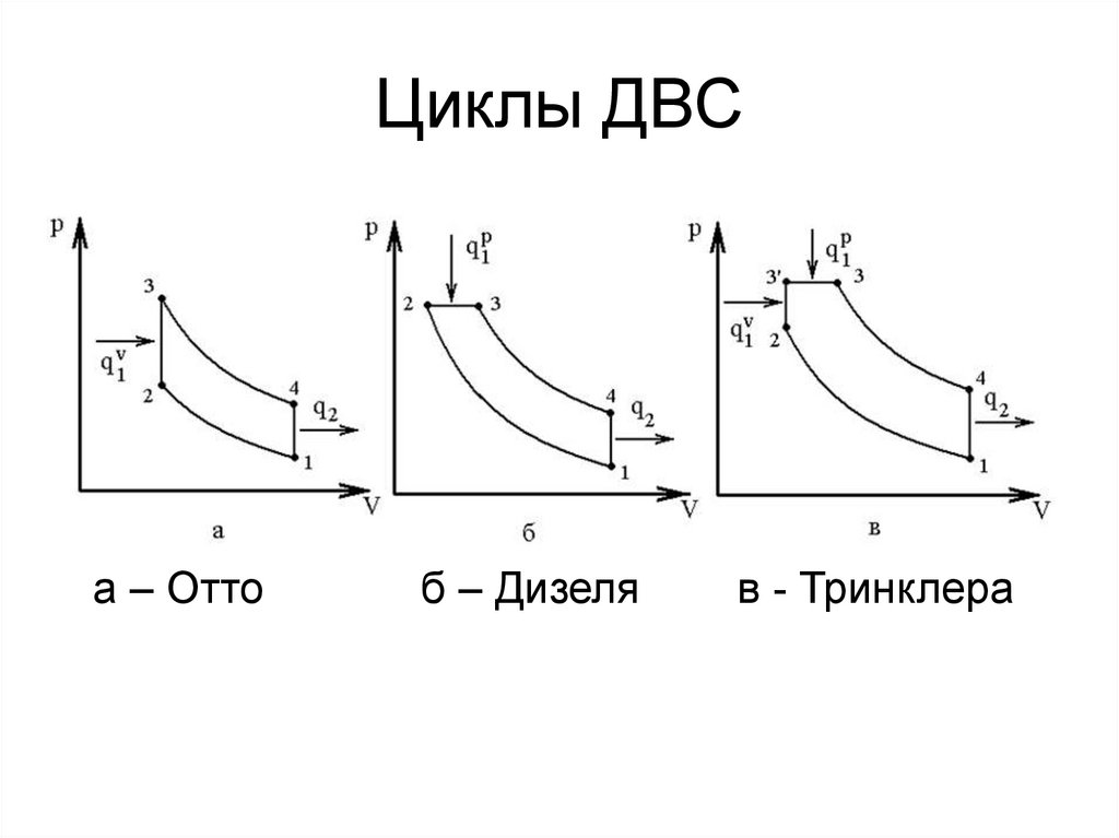 Различные термодинамические циклы двигателя внутреннего сгорания.