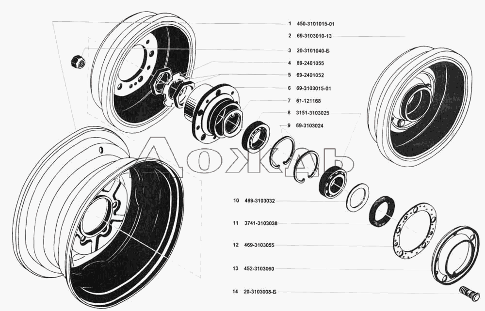 Ступица передняя/задняя на УАЗ “Буханка”: схема.