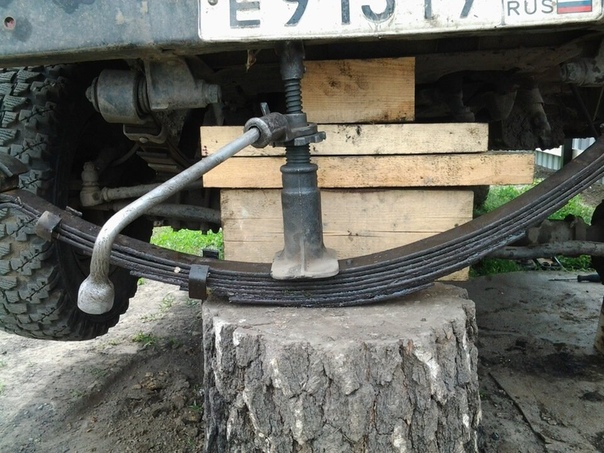 Окончательно затягиваем гайки осей рессоры у стоящего на колесах снаряженного автомобиля.
