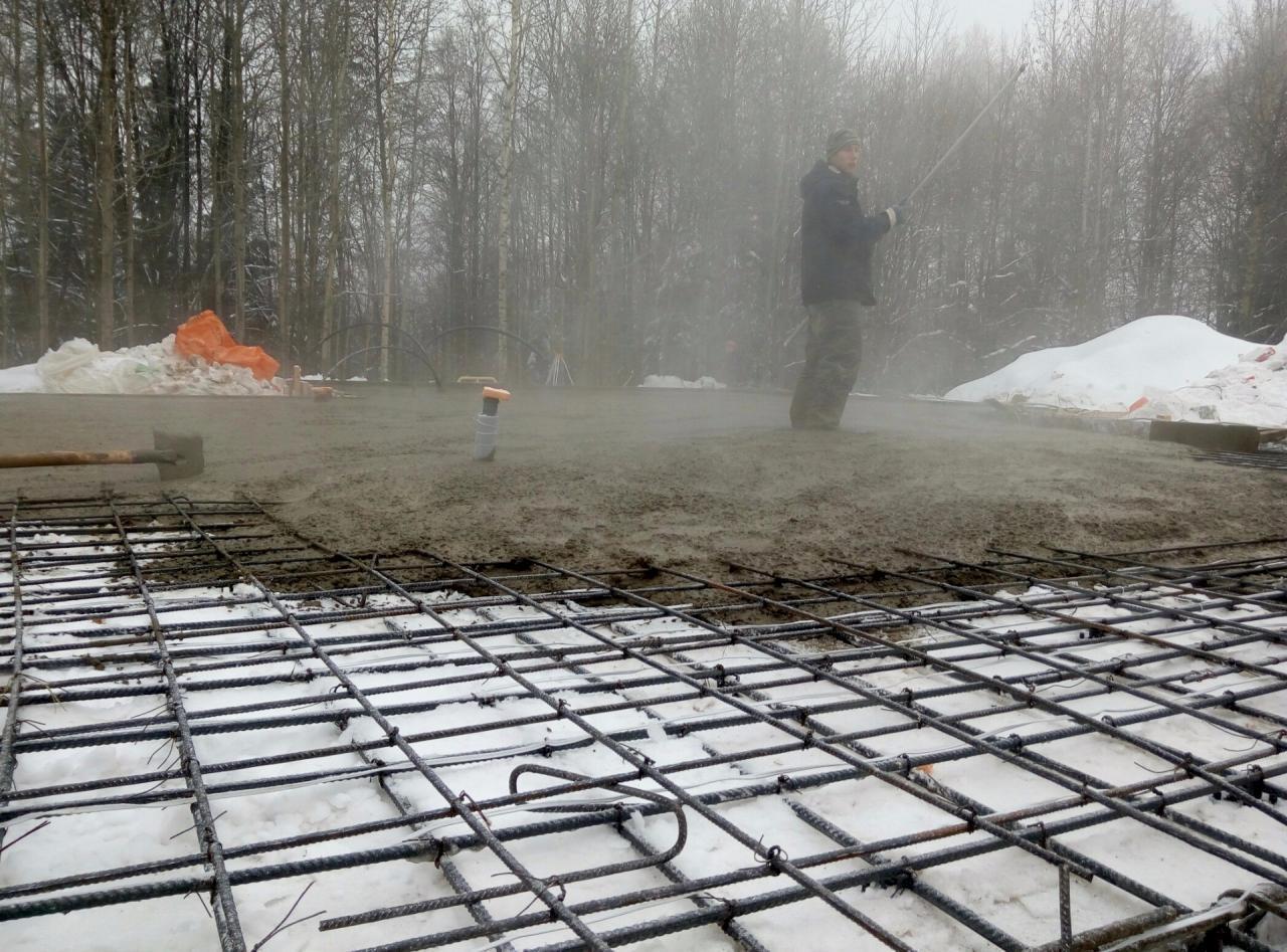 Обратите внимание на грунт, на который вы заливаете бетон. Температура воздуха может быть выше нуля, но земля может быть промерзшей. И ни в коем случае нельзя заливать бетоном промерзшую землю. Прогрейте землю бетонными покрывалами или черным пластиком в течение нескольких дней перед заливкой.