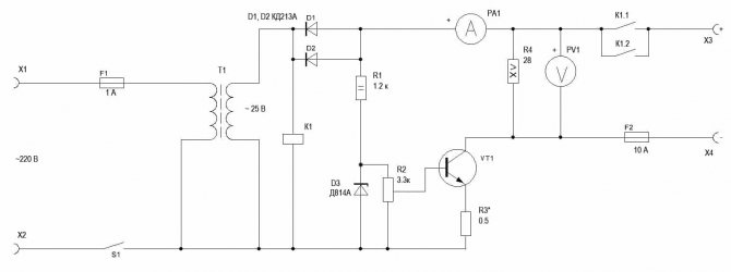 Рис. 6.1. Схема зарядного устройства аккумуляторных батарей по методу тока постоянной величины