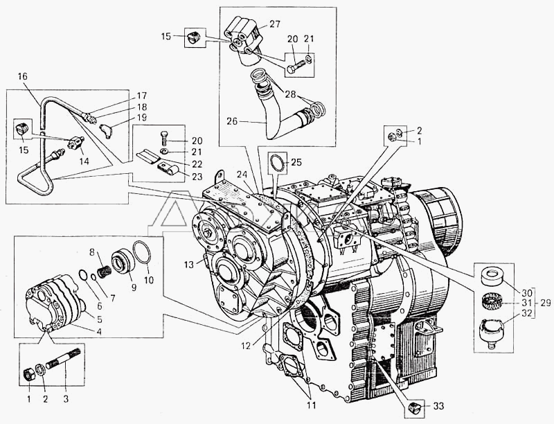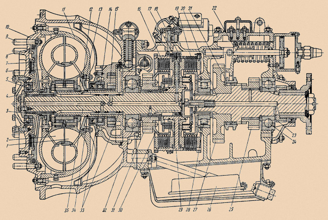 - насосное, осуществляющее связь между двигателем и гидротрансформатором;