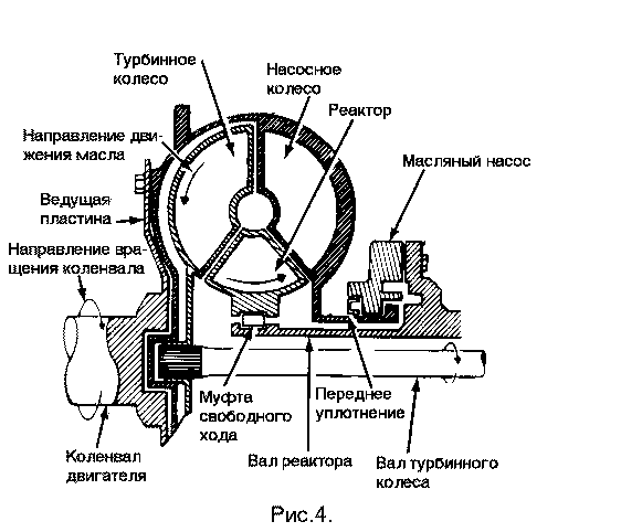 Следствием такого движения является гидромеханическая передача момента к коробке передач от мотора.