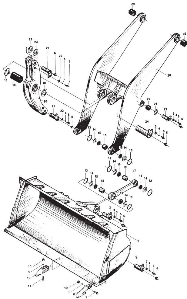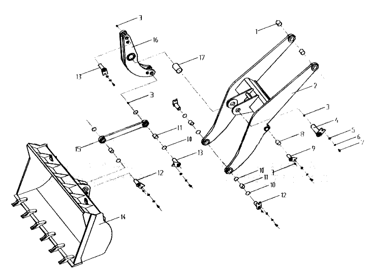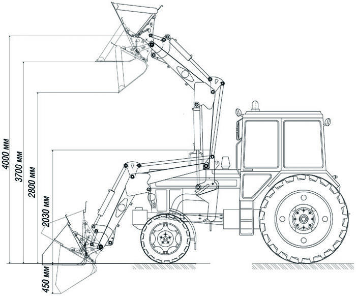 Устройство фронтального погрузчика одноковшового включает в себя такие детали, как: