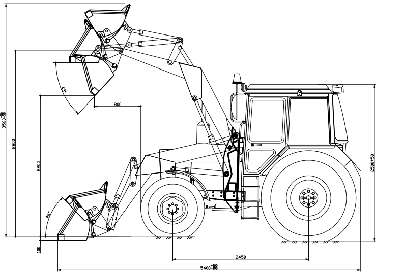 В базовую комплектацию входит сам фронтальный погрузчик с ковшом вместимость 1,9 м3. Он полностью готов к работе и не требует дополнительных затрат.