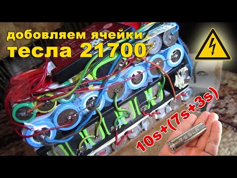 Например, для того чтобы из 36В батареи конфигурации 10s3p, сделать батарею 48В, нужно разобрать один «длинный» p-ряд, состоящий из 10 элементов и сделать из 9и элементов три s-секции («коротких» ряда). Получится батарея 13s2p, которую уже можно доращивать «длинными» p-рядами, состоящими из 13 элементов каждый. Такой же метод применяется и при ремонте аккумуляторных батарей — основная цель, сохранить равные по емкости и сопротивлению «короткие» s-секции. При увеличение вольтажа потребуется замена BMS.