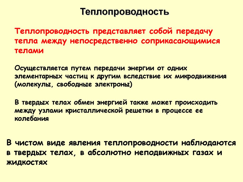- Следовательно, передача тепла в твердом теле происходит путем теплопроводности.