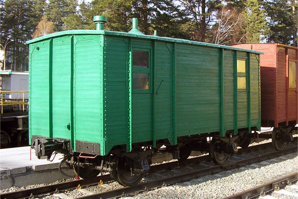 Главная Энциклопедия Техника Железнодорожные войска и сооружения Грузовой крытый железнодорожный двухосный вагон — «теплушка». СССР