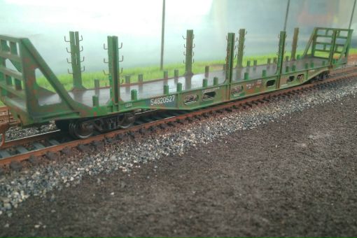 | Особенность модели: | Платформа с 12-ю стойками, 2-мя торцевыми стенами для перевозки труб большого диаметра |
