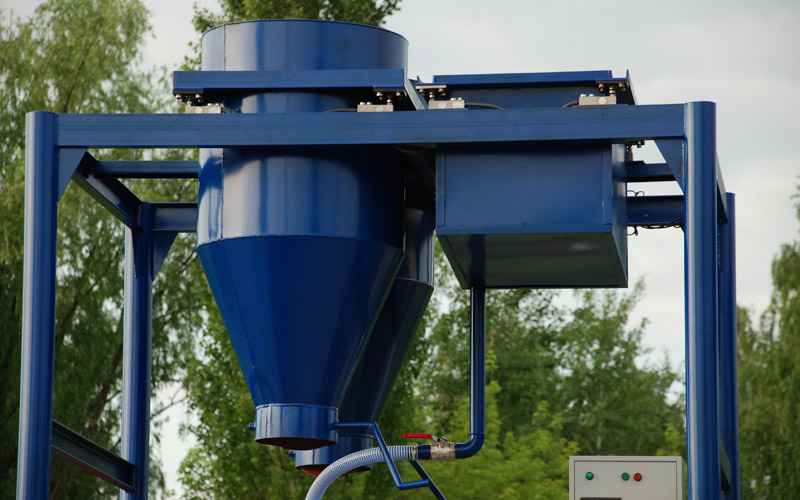 Весовой дозатор цемента позволяет с высокой точностью произвести дозацию. Также служит емкостью для временного хранения и дальнейшего сброса цемента по команде в смеситель.