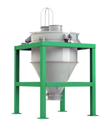 Данная схема используется при недостатке высоты дозаторного отделения при производственно-технологической необходимости точности взвешивания. Данная схема характеризуется: небольшой высотой подвески дозирующего бункера, тензометрические датчики контроля дозировки, небольшой период раскачивания, удобная компоновка и управление; - Исполнение с опорной рамкой. Этот вид конструкции весового дозатора цемента используется при невозможности подвесить дозирующее устройство к расходному бункеру. Характеризуется минимальной высотой подвески, использованием тензометрических датчиков, отсутствием раскачивания и высокой скоростью дозирования;
