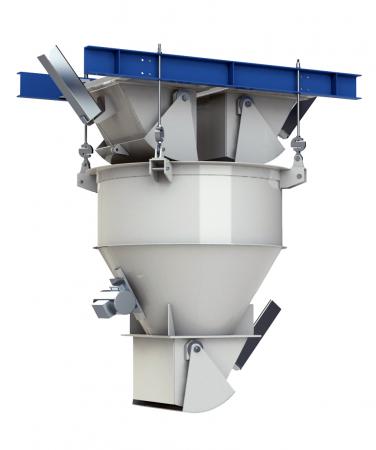 - Исполнение весового дозатора цемента с центральной подвеской. Используется для реконструкции технически и морально устаревших стационарных БСУ (Бетоно Смесительных Установок). Высокая точность взвешивания при использовании тензометрических датчиков контроля взвешивания. В числе других преимуществ: большая высота подвески бункера. Существенное раскачивание дозатора при интенсивном потоке дозируемого материала, узел центральной подвески симметричен поперечной балке дозатора;