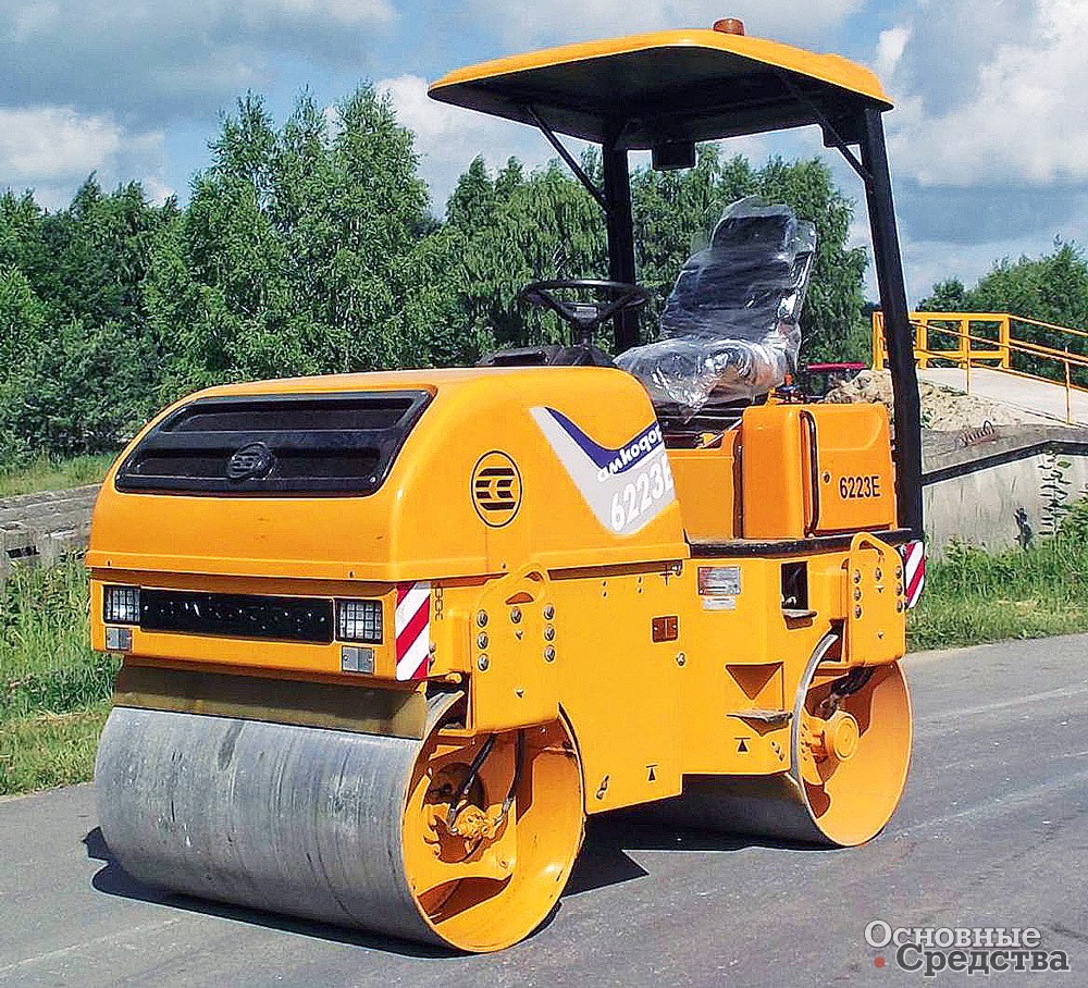Высокий уплотняющий эффект катка достигается совместным воздействием металлического вибровальца и ряда пригруженных пневмоколес.